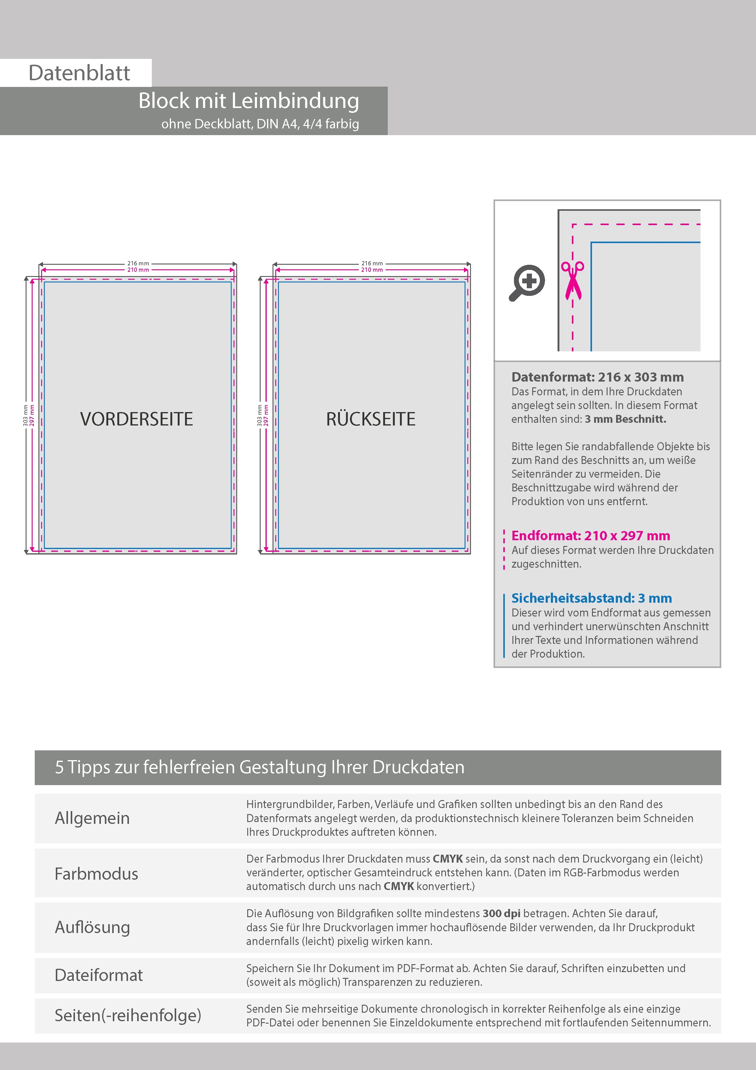 Block mit Leimbindung, DIN A4, 25 Blatt, 4/4 farbig beidseitig bedruckt
