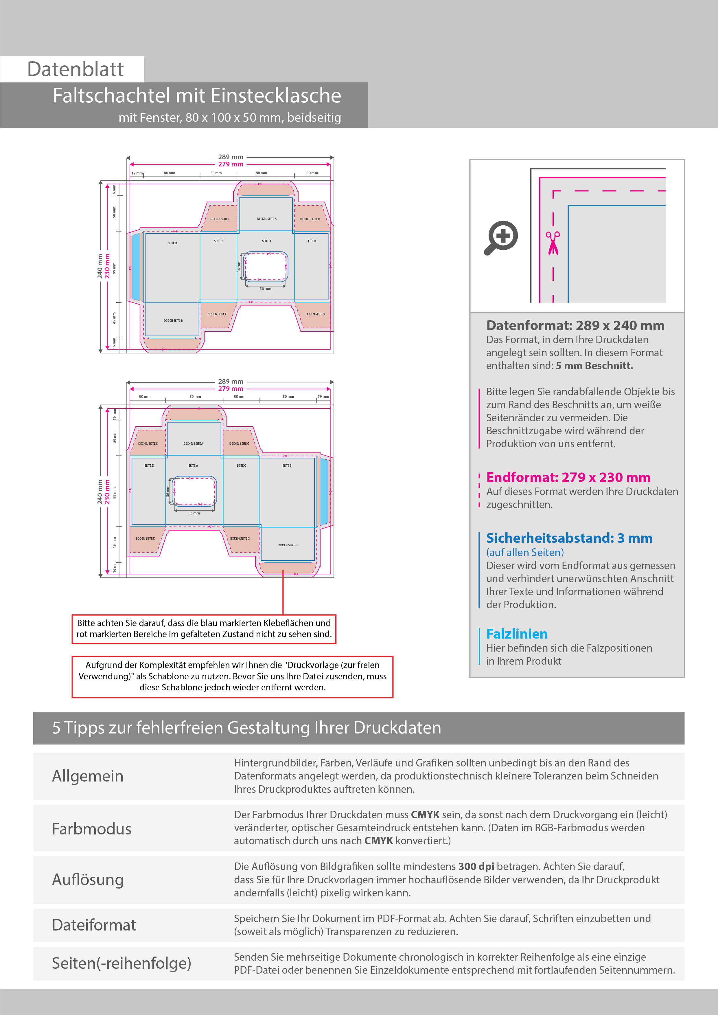 Faltschachtel (8 cm x 10 cm x 5 cm) beidseitig bedruckt 4/4-farbig mit gestanztem Fenster