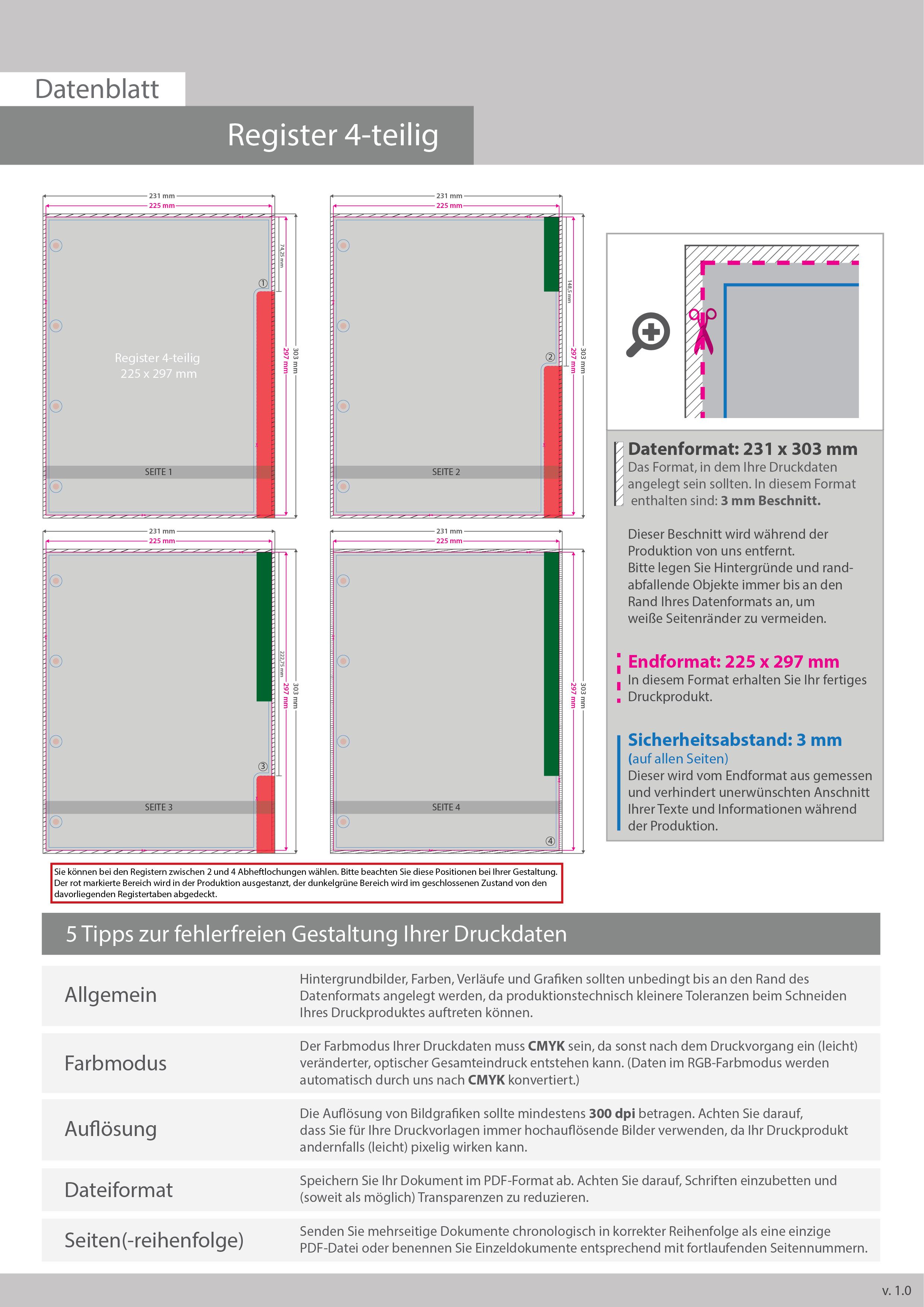 Registerblätter für DIN A4, 4-teilig, einseitig bedruckt (4/0)