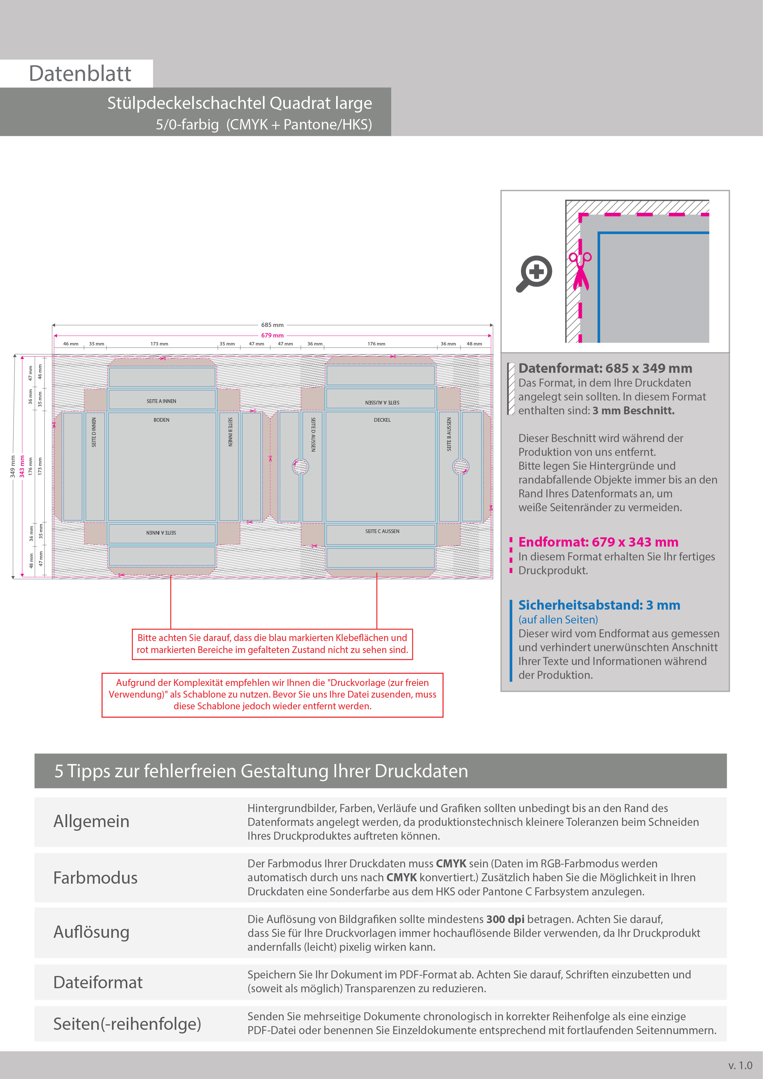 Stülpdeckelschachtel Quadrat large, einseitig bedruckt 5/0-farbig (CMYK + Sonderfarbe)