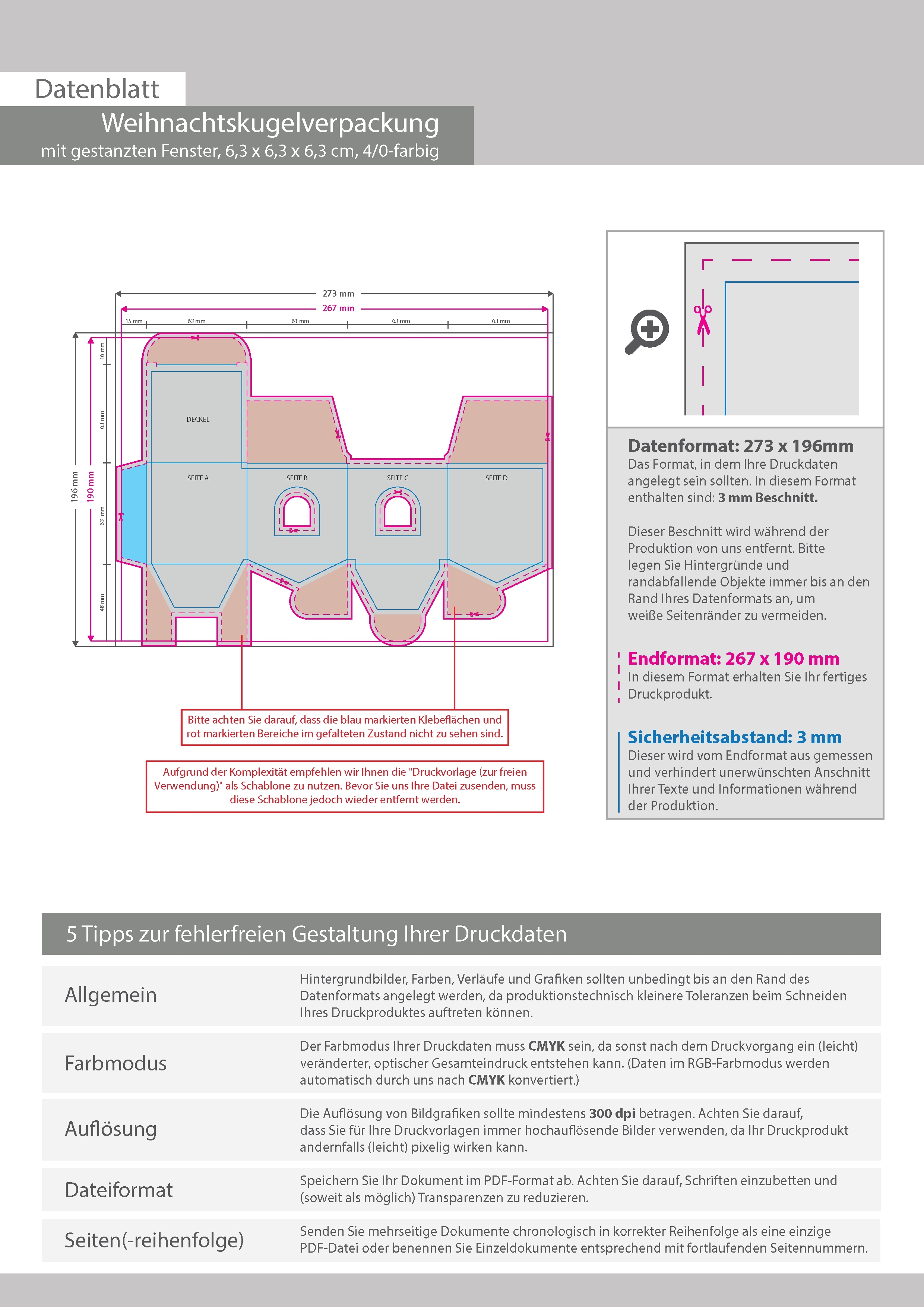 Weihnachtskugelverpackung mit gestanzten Fenster (6,3 x 6,3 x 6,3 cm) einseitig bedruckt 4/0-farbig